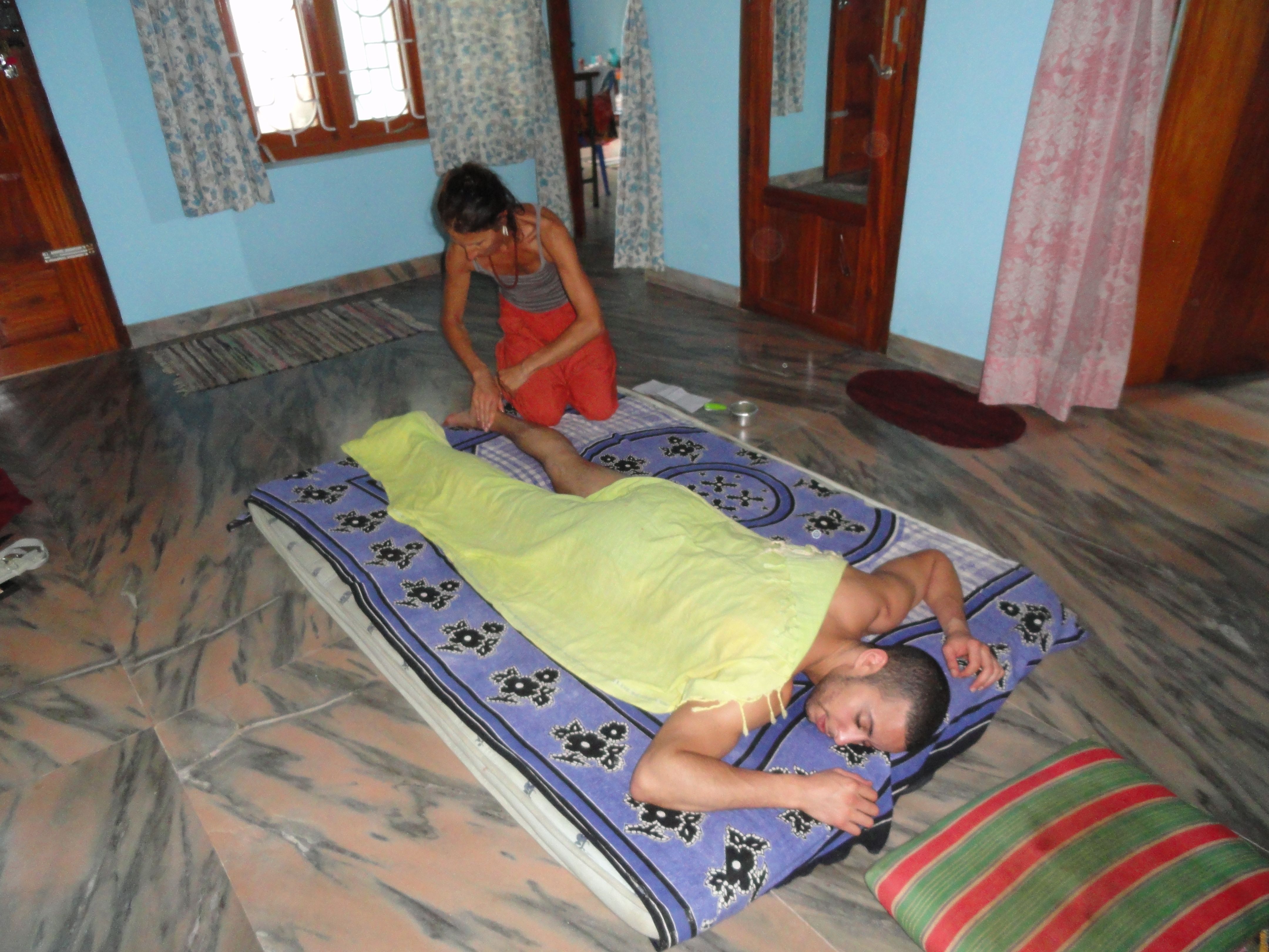 Massage à l'huile de toute la face posterieur du corps (pied, jambe, dos, nuque et tête).